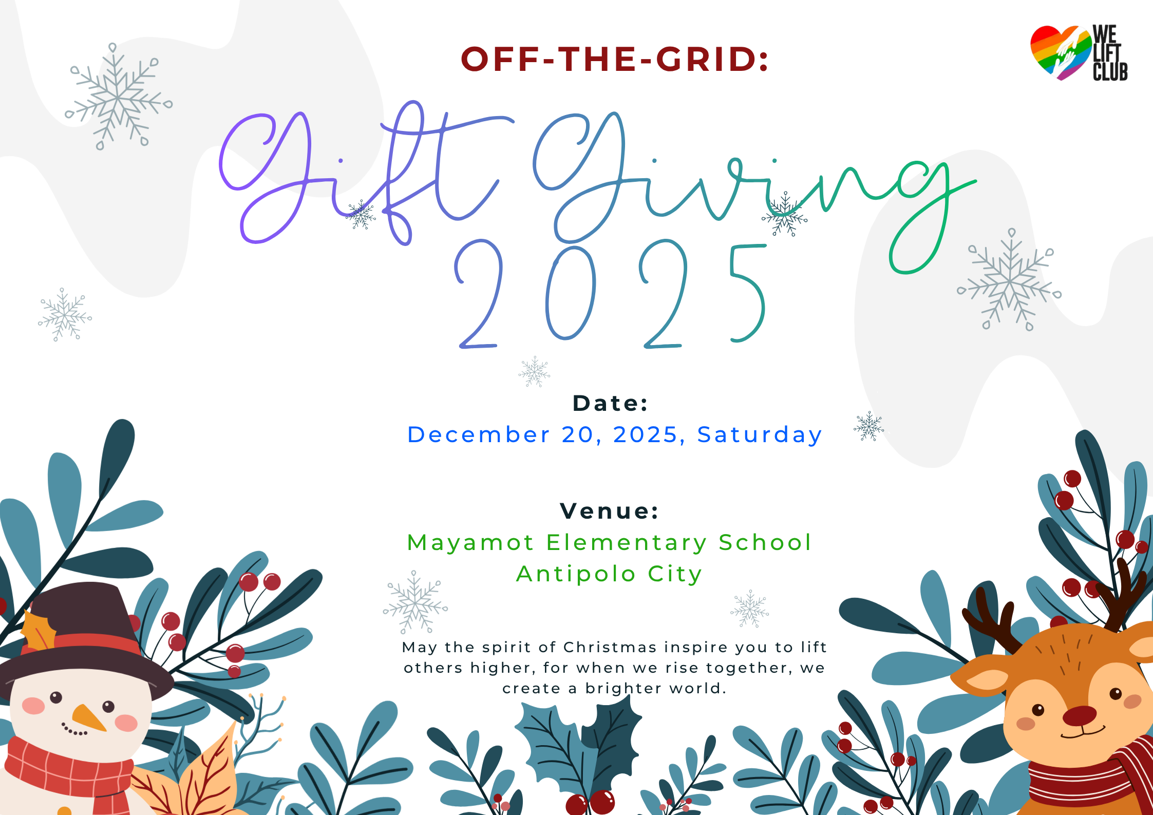 The season of giving is here, and so is We Lift Club’s Off the Grid: Gift Giving 2025! 💙