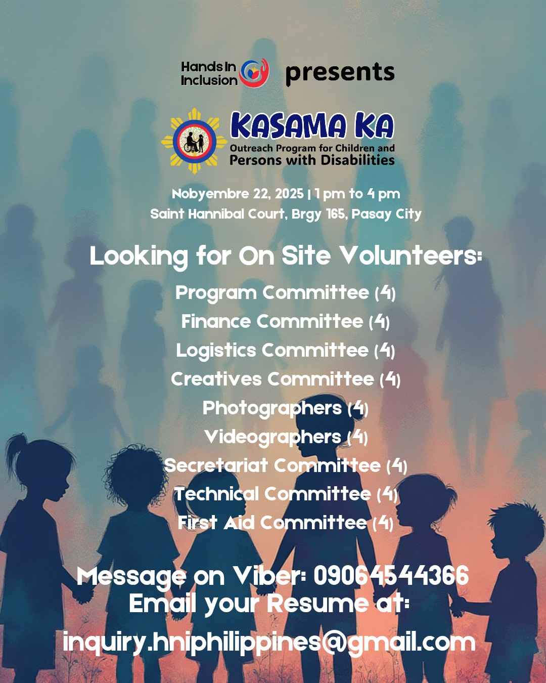 #KASAMAKA #HandsInInclusionPH #VolunteerOpportunity #OutreachProgram #PWDInclusion #ChildrenWithDisabilities