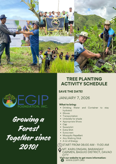 Join us for this meaningful activity at Mt. Karilongan, Brgy. Carmen, Baguio District, Davao City.