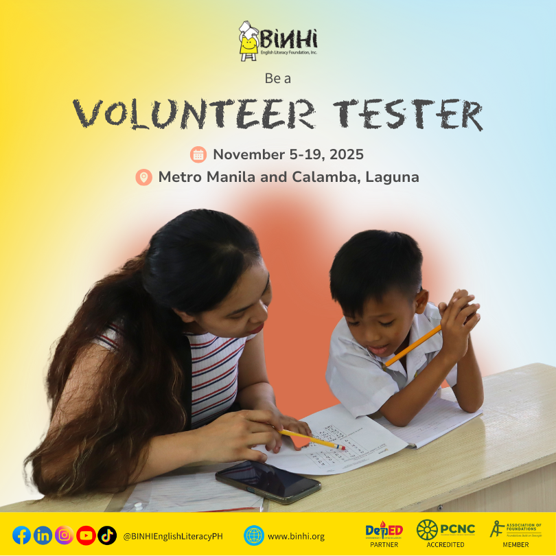 The ability to read is a fundamental right, yet many young Filipino children struggle to grasp this essential skill. At Binhi English Literacy Foundation, Inc. (BINHI), we're working to change that, one child at a time. As a Volunteer Tester, your support will provide us with crucial insights into our BINHI Scholars' development, ensuring we're effectively boosting their English language skills and fostering their academic growth.